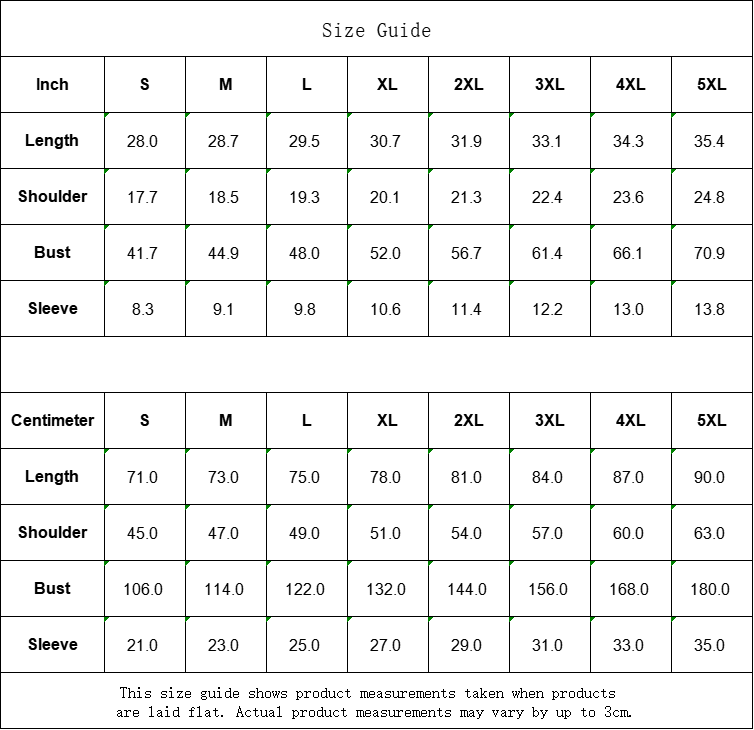 Centimeter | S | M | L | XL | 2XL | 3XL | 4XL | 5XL |